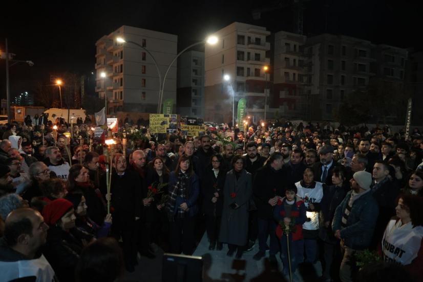 Bu sesimize ses, sözümüze söz olanlara, yitirdiğimiz canları bir kez daha saygıyla ananlara selam olsun! Felaketin gerçek sorumlularıyla yüzleşilmesini ve adaletin sağlanmasını isteyenlere, Hatay halkına ve dayanışma içinde burada bulunanlara selam olsun! Selam olsun, insanca bir yaşam kurulana kadar bu mücadeleyi kararlılıkla sürdürecek olanlara!"