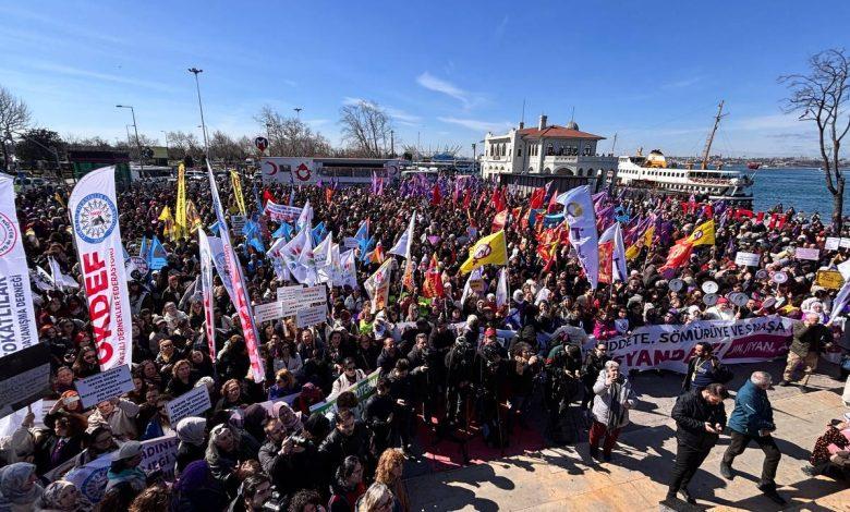 8 Mart Dünya Kadınlar Gününde, Kadıköy’de binlerce kadın İskele Meydanı’ndan Rıhtım’daki miting alanına yürüdü.