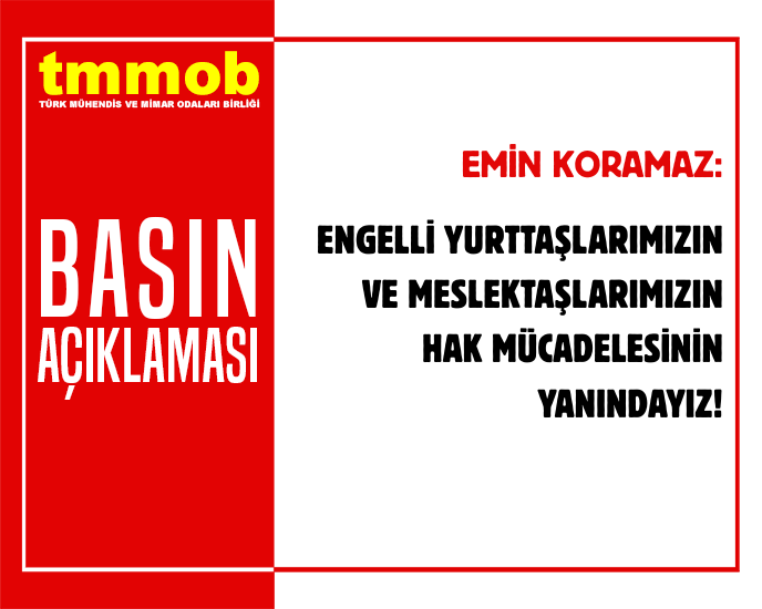 TMMOB ve bağlı odalar olarak, toplumun tüm kesimleriyle dayanışma içinde, engelli yurttaşlarımızın ve meslektaşlarımızın hak mücadelesinin yanındayız.