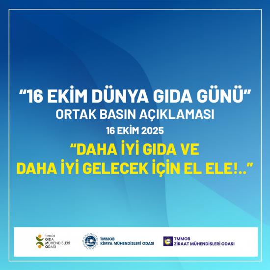 TMMOB Gıda Mühendisleri Odası, Kimya Mühendisleri Odası ve Ziraat Mühendisleri Odası, 16 Ekim Dünya Gıda Günü dolayısıyla 15 Ekim 2025 tarihinde ortak bir basın açıklaması yaptılar.