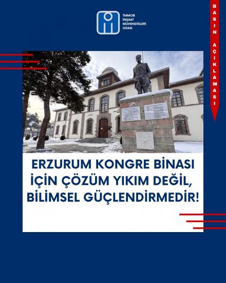 TMMOB İnşaat Mühendisleri Odası, Erzurum Kongre Binası hakkında 15 Ocak 2026 tarihinde bir basın açıklaması yaptı: "Erzurum Kongre Binası için Çözüm Yıkım Değil, Bilimsel Güçlendirmedir!"