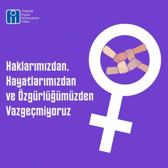 Kadın İnşaat Mühendisleri olarak biliyoruz ki: Yaşam hakkımızı, mesleki varlığımızı ve emeğimizi korumanın yolu; eşitlikten, adaletten ve demokratik değerlerden taviz vermeden mücadele etmekten geçer.