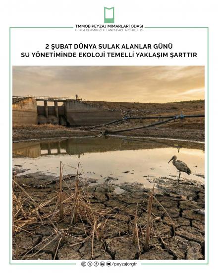 TMMOB Peyzaj Mimarları Odası, Dünya Sulak Alanlar Günü dolayısıyla sulak alanların korunmasının bir tercih değil, yaşamsal bir zorunluluk olduğunu bir kez daha hatırlatarak 2 Şubat 2026 tarihinde bir basın açıklaması yaptı.