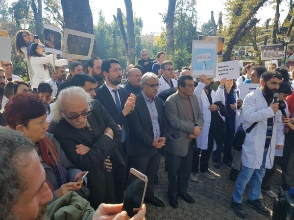 "Doktorlar burada sözlerini Ankara halkıyla paylaşıyorlardı. Ama çıka çıka bir torbadan bırakın sağlık çalışanlarına yönelik şiddetin önlenmesini; sağlık çalışanlarına yönelik şiddetin büyütülmesi çıktı. Bu yasa gerçekten faşizan bir yasadır. Doktorların kazanılmış mesleki haklarını, unvanlarını, almış oldukları eğitimi yok saymaktadır. En temel insan haklarından biri olan çalışma hakkına el uzatmaktadır. Anayasaya da aykırıdır, uluslararası hukuka da aykırıdır, akla da aykırıdır, vicdana da aykırıdır. Doktor olmak için yıllarca dökülen alın terine aykırıdır.