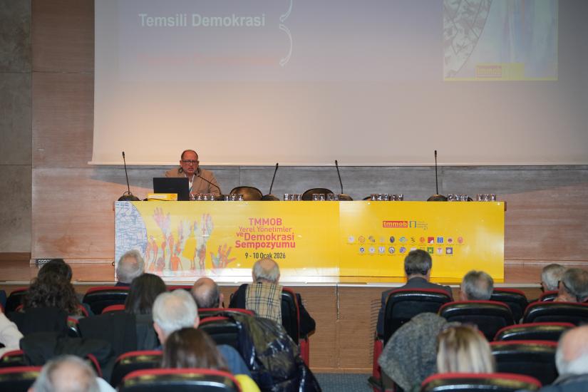 Yerel yönetimlerde yaşanan değişim ve dönüşümlerin ekonomiye ve toplumsal yaşama, kentlerimiz ve meslek alanlarımıza etkilerinin değerlendirildiği TMMOB Yerel Yönetimler ve Demokrasi Sempozyumu 9-10 Ocak 2026 tarihlerinde İMO Teoman Öztürk toplantı salonunda gerçekleştirildi.