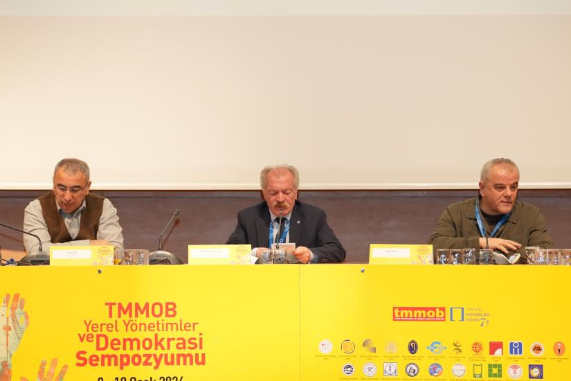 Türk Mühendis ve Mimar Odaları Birliği adına hepinizi saygı ve sevgiyle selamlıyorum. Mimarlar Odamızın yürütücülüğünde düzenlenen TMMOB Yerel Yönetimler ve Demokrasi Sempozyumu’na hoş geldiniz.