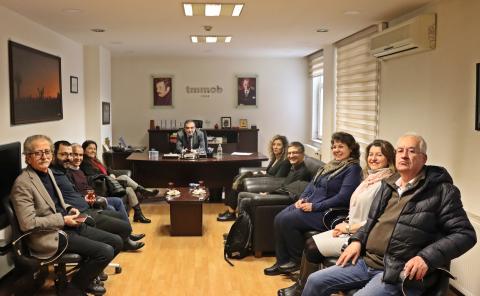 Türkiye Belediyeler Birliği Genel Sekreteri Suat Yıldız, Genel Sekreter Yardımcıları Ferudun Ulutaş ve Şengül Altan Arslan, Eğitim Müdür Evren Haspolat ve Özel Kalem Müdürü Nurdan Türeci Akova 9 Şubat 2026 tarihinde TMMOB'yi ziyaret ederek TMMOB Yönetim Kurulu Başkanı Emin Koramaz, TMMOB Yönetim Kurulu II. Başkanı Ekrem Poyraz ve TMMOB Genel Sekreteri Özgür Topçu ile görüştü. Görüşmede Birlik çalışmaları ve ülke gündemine ilişkin görüş alışverişinde bulunuldu.