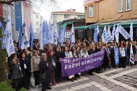 TMMOB 48. Dönem Kadın Çalışma Grubu, 25 Kasım Uluslararası Kadına Yönelik Şiddetle Mücadele Günü dolayısıyla MMO Eğitim ve Kültür Merkezi'nde kitlesel bir basın açıklaması yaptı.