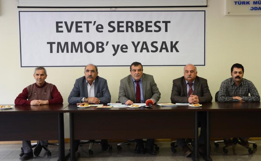 TMMOB, ülkemizin geleceği için referandum çalışmalarına yönelik gelişen antidemokratik uygulamaların son bulması için tüm ilgili ve yetkililere çağrıda bulunmaktadır.