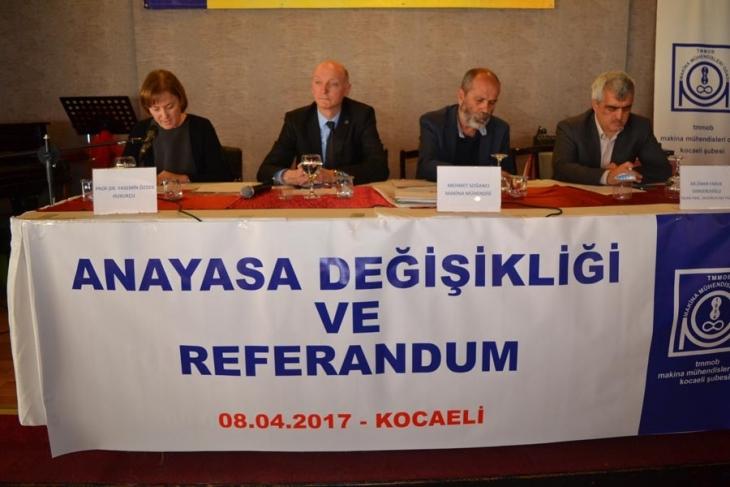 Makina Mühendisleri Odası Kocaeli Şubesi, 8 Nisan 2017 tarihinde Kocaeli Yüksek Öğrenim Derneği Lokalinde TMMOB Yönetim Kurulu Eski Başkanı Mehmet Soğancı, Prof. Dr. Yasemin Özdek ve Dr. Ömer Faruk Gergerlioğlu`nun katılımıyla "Anayasa değişikliği ve Referandum" konulu bir panel gerçekleştirdi.