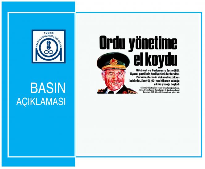 Makina Mühendisleri Odası 12 Eylül Askeri Darbesinin yıldönümü dolayısıyla 12 Eylül 2022 tarihinde bir basın açıklaması yaptı.