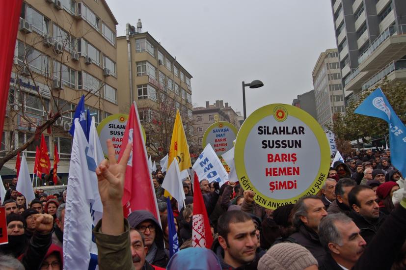 Doğu ve Güneydoğu’da uygulanan sokağa çıkma yasakları ve savaş haline karşı barışı savunmak için, DİSK, KESK ve TMMOB, 29 Aralık 2015 Salı günü ülke genelinde “iş bırakma” eylemi düzenleyerek alanlara çıktı.