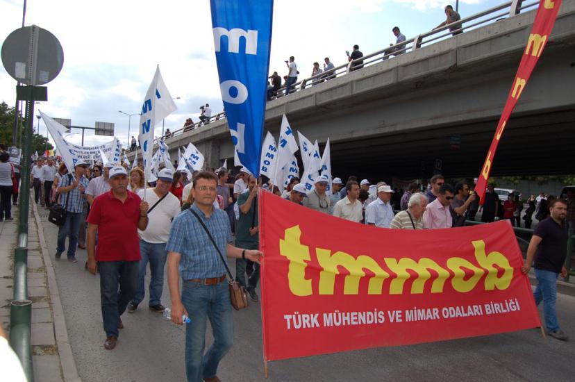 Mitinge TMMOB ve bağlı odaların yöneticileri ve çok sayıda üye katıldı.