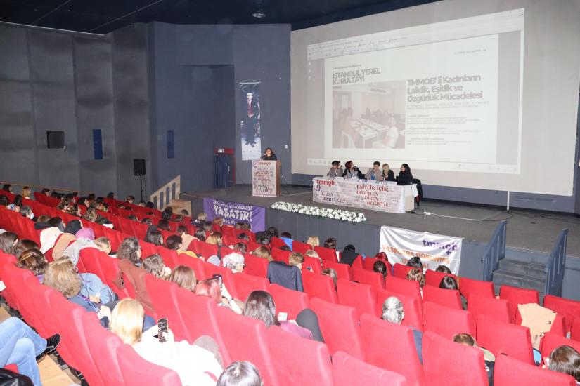 Ülkenin içinde bulunduğu baskı ortamına, gericileşmeye, tek adam rejimine karşı TMMOB’nin laik, kamucu, demokratik çizgisini kadınların sesinden yükselten bir zemin.
