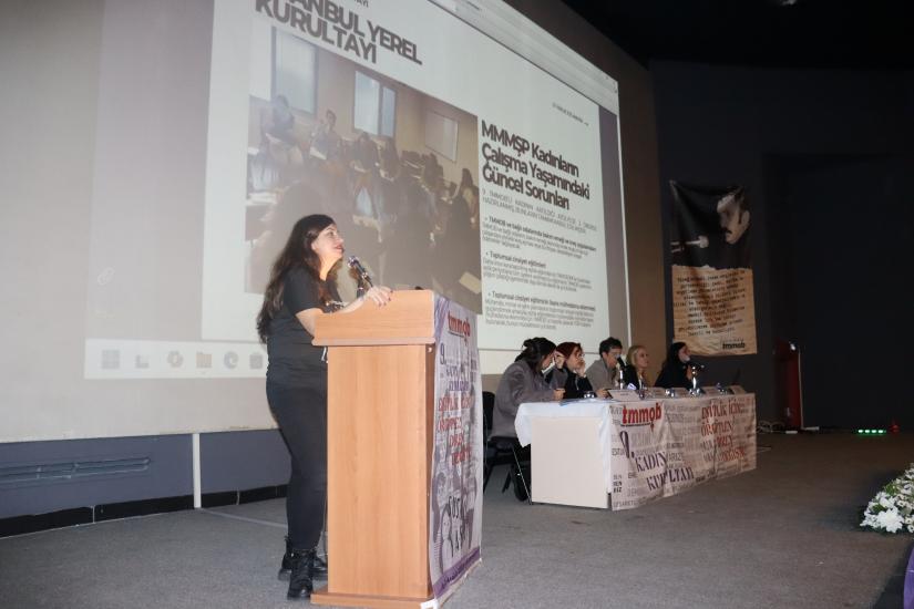 Basın açıklaması ve öğle arasının ardından 2. Oturum TMMOB'de Kadın Örgütlülüğü Forumuyla başladı. İstanbul ve Mardin İl Koordinasyon Kurulları sunumlarını gerçekleştirdiler.