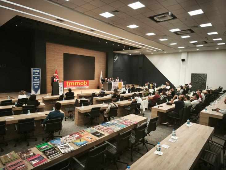 Daha sonra TMMOB Yönetim Kurulu Üyesi Jeofizik Mühendisi Şevket Demirbaş özetle şunları söyledi: "Hepinizi TMMOB Yönetim Kurulu ve şahsım adına saygıyla selamlıyorum. Bilinmelidir ki mühendislik, mimarlık ve şehir plancılığı alanlarında yaşanan hak kayıpları ve itibarsızlaştırma girişimleri yalnızca meslektaşlarımızı değil, ülkenin geleceğini de doğrudan etkilemektedir. Bir zamanların en saygın meslekleri işsizlik ve güvencesizliğin simgesi haline gelmiş; gençlerimiz yurt dışında umut ararken, emeklilerimiz yaşamlarını yoksulluk içinde sürdürmek zorunda bırakılmıştır. Adaletsiz atamalar, düşük ücretler, ağır çalışma koşulları ile kadın ve engelli meslektaşlarımızın maruz kaldığı eşitsizlikler bu tabloyu daha da derinleştirmektedir. Ancak tüm bu olumsuzluklara rağmen bizler, bilimin ve tekniğin ışığını rehber edinerek, örgütlü mücadelemiz ve dayanışmamızla ülkemizin aydınlık yarınlarını kurmaya kararlıyız. Bu sebeple önerileriniz kurultayımız için önemli ve değerlidir. Hepinizi tekrar TMMOB ve şahsım adına sevgi saygı ve dostluklara selamlıyorum. Kurultayımızın verimli geçmesini diliyorum."