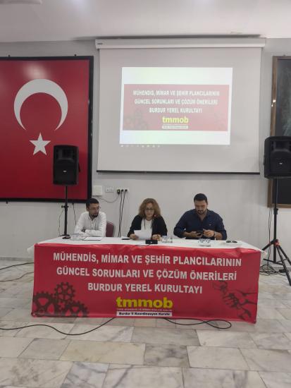 TMMOB Mühendis, Mimar ve Şehir Plancıları Güncel Sorunları ve Çözüm Önerileri Burdur Yerel Kurultayı, Burdur İl Koordinasyon Kurulu tarafından 20 Eylül 2025 tarihinde Belediye Konferans Salonu Amfisinde düzenlendi.