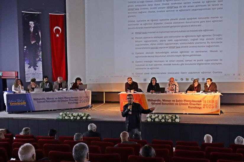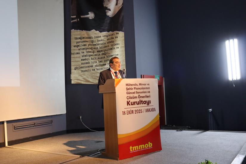 “TMMOB Mühendis, Mimar ve Şehir Plancılarının Güncel Sorunları ve Çözüm Önerileri Kurultayı”, meslektaşlarımızın çalışma yaşamlarında ve sosyal hayatta uğradıkları hak kayıplarını, değersizleştirmeyi ve mesleklerimizin ülkemiz için önemini gündeme getirmek amacıyla, 18 Ekim 2025’te Ankara’da merkezi olarak gerçekleştirildi.