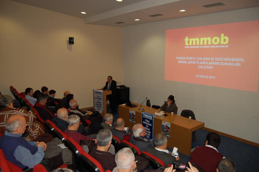 TMMOB Ücretli Çalışan-İşsiz Mühendis, Mimar, Şehir Plancılarının Sorunları Çalıştayı 22 Aralık 2018 Cumartesi günü İnşaat Mühendisleri Odası Rüştü Özal Salonu'nda düzenlendi.