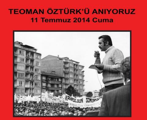 TMMOB`nin bugünkü toplumcu çizgisinin yaratıcılarından, 1973-1980 dönemi TMMOB Başkanı Teoman Öztürk ölümünün 20. yılında (11 Temmuz 2014) saat 18.00`de Karşıyaka`daki anıt mezarı başında anılacak. Saat 19.00`da da "Teoman Öztürk" isminin TMMOB Öğrenci Evi ve Sosyal Tesisi`ne verilmesi töreni gerçekleştirilecek.